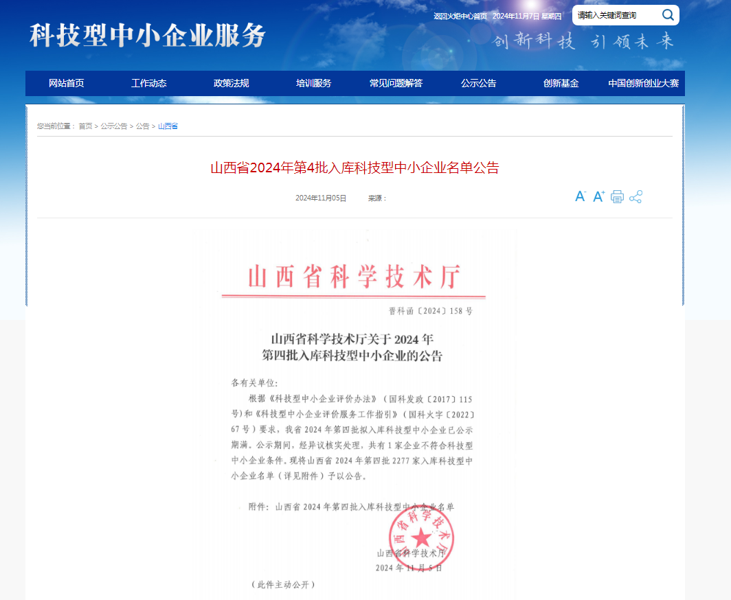 日前,山西省科學技術廳發(fā)布《山西省2024年第4批入庫科技型中小企業(yè)名單》公告,山西宏微云信息技術有限公司成功入選山西省科技型中小企業(yè)。(入庫編號:2024140105A0002727)